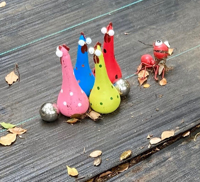 Once again, going farther afield than normal, I glanced at a yard that at first didn't present anything interesting. That is, until you actually took a second look. It is randomly full of insects, weird birds, and what I can only describe as Googlies. It is fascinating and a bit disquieting all at the same time. See what you think: